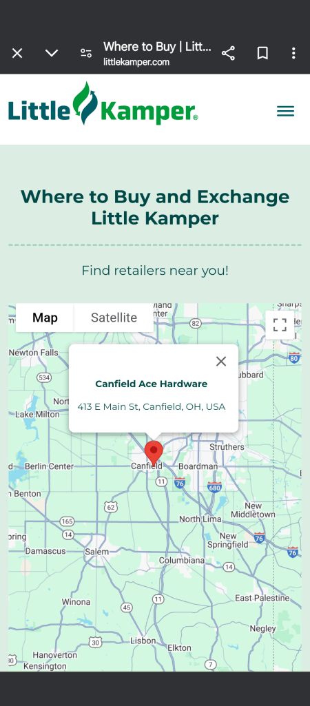 Specific retailers across the country are partnering with Little Kamper. I contacted the Ace Hardware in Canfield, Ohio today to confirm that they exchange the cans. I look forward to buying there in the near future.