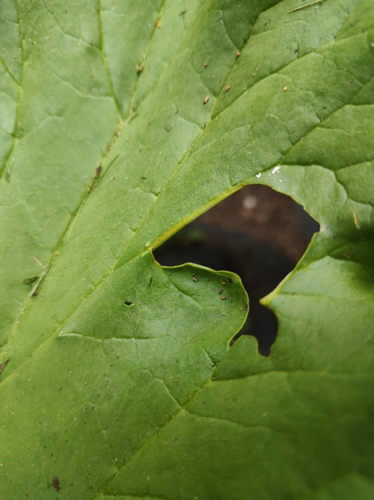 Among the many disappointments of the 2025 growing season, the rhubarb had the life sucked out of it. It fell over, partially from the heat, but most likely because its source of energy—its leaves—were chomped up.