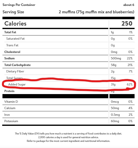 I was in the grocery store and I walked down the cake aisle. I didn’t really want cake so I decided to look for a muffin mix. I picked up the GF mix that I have used before and read the nutrition label.