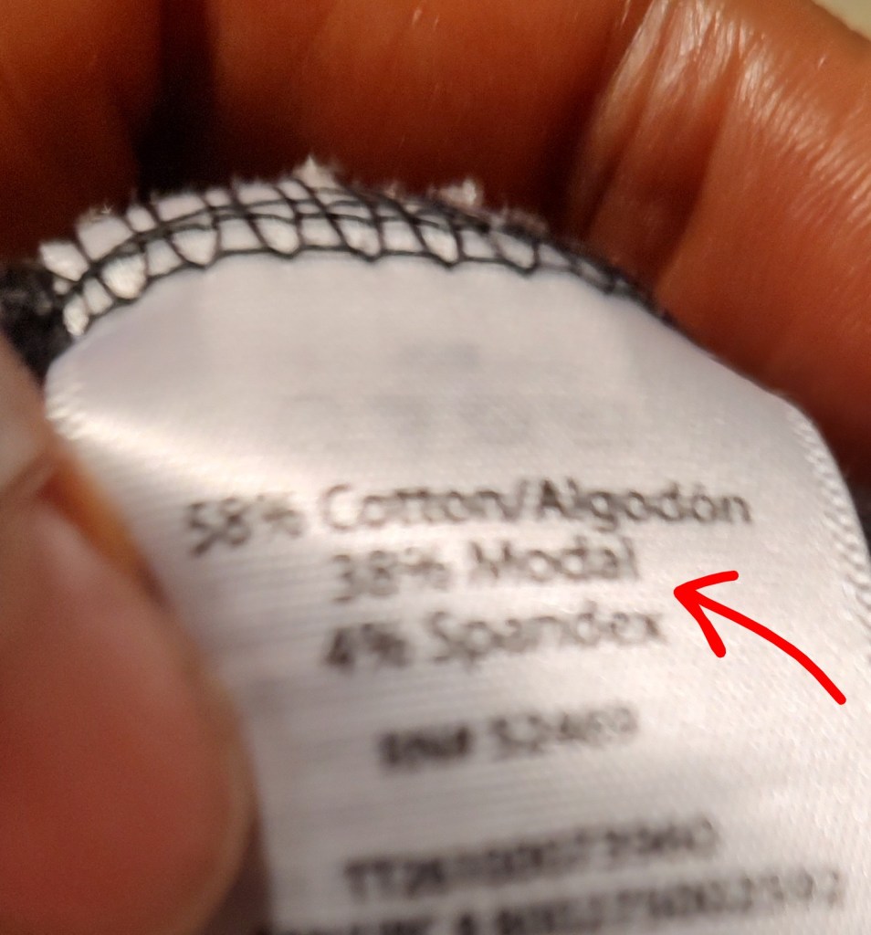 I checked out the fabric label and saw “modal” listed. I haven’t bought anything for a while so this was an unknown fabric for me. I performed a quick search and found out that modal is made from the fibers of beech trees. It is marketed as natural and eco-friendly. Jackpot! Or so I thought. Apparently there is a downside to this natural fabric.