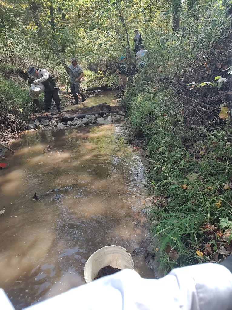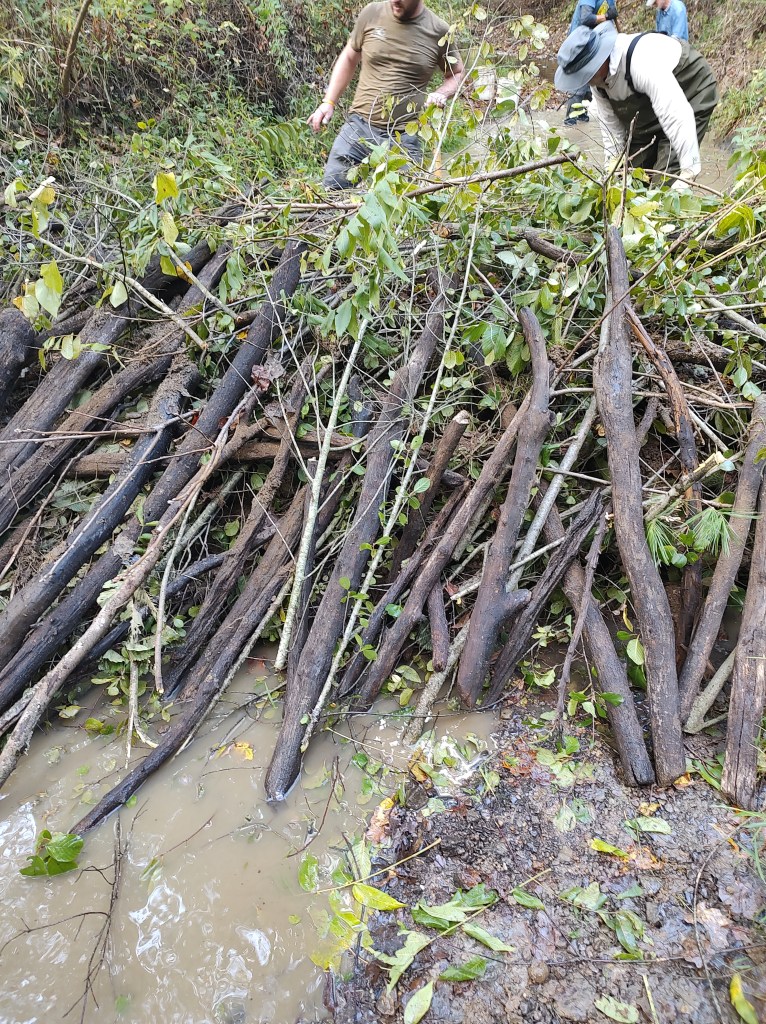 So on a sunny Friday afternoon in September, I joined a volunteer crew to construct the BDA in Fox Creek. It took a few hours of shoveling silt and clay, moving logs and branches, raking and picking up leaves but we worked as a team to get it completed. I met a few cool people who also love the preserve and I look forward to working with them again on the next project day.