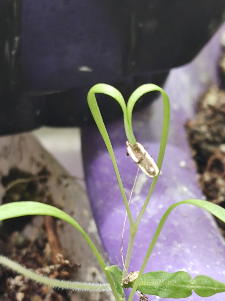 In our horticulture work, we often marvel at our plants’ abilities to adapt and survive. Seeds dropped or discarded on the edge of a concrete path will grow to produce flowers, and sometimes do even better than the plants we nurture (go figure! ๐). Today we are marveling at the seedling shown below, whose small leaves happened to grow and curve in, with the seed still attached, in the shape of a heart. I took that as a message that the plants (and the Earth as a whole) give back the love that they receive.